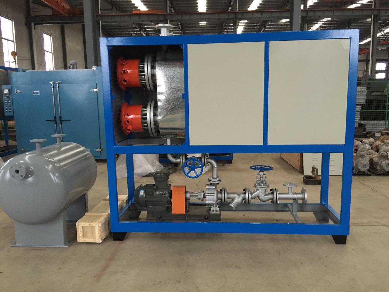 導(dǎo)熱油爐排氣流程: 1、導(dǎo)熱油通過(guò)膨脹槽注油口處加注,并通過(guò)膨脹口管道流入設(shè)備及油爐本體內(nèi),此時(shí)注油時(shí)一定要打開(kāi)系統(tǒng)中所有的閥門(放油閥除外),讓導(dǎo)熱油流入筒體及需加熱設(shè)備內(nèi)。 2、當(dāng)液面顯示約為膨脹槽高度1/2時(shí),停止注油。 3、首 行常溫排氣:接通電源,打開(kāi)導(dǎo)熱油加熱器的進(jìn)出口閥門及排氣閥(膨脹管道閥門需一直開(kāi)著以及時(shí)補(bǔ)充油量),按動(dòng)油泵啟動(dòng)按鈕,油泵運(yùn)行,油泵應(yīng)按箭頭指示方向正常運(yùn)行,壓力表壓力顯示在規(guī)定范圍內(nèi),視聽(tīng)油泵運(yùn)行情況,如有異常現(xiàn)象應(yīng)立即停機(jī)檢查,將故障排除后再重新起動(dòng)油泵,進(jìn)行常溫下排氣,直至壓力表指示穩(wěn)定。進(jìn)行常溫排氣時(shí),要注意觀察膨脹槽內(nèi)的液位,當(dāng)?shù)陀谝?guī)定的液位高度時(shí)要及時(shí)進(jìn)行補(bǔ)充。 4、升溫脫水:在確認(rèn)常溫下運(yùn)行正常后,即可進(jìn)行升溫脫水排氣(操作前詳閱導(dǎo)熱油使用說(shuō)明書及溫控儀使用說(shuō)明書),升溫脫水排氣可按如下步驟進(jìn)行: 步:升溫至100-120℃保溫 開(kāi)始升溫時(shí),應(yīng)該控制升溫速度在50℃/h以內(nèi),并且監(jiān)視壓力表顯示是否正常,如發(fā)現(xiàn)無(wú)壓力或壓力不穩(wěn),說(shuō)明系統(tǒng)內(nèi)仍有殘留氣體,此時(shí)要求按3要求重復(fù)進(jìn)行常溫排氣操作,待系統(tǒng)壓力穩(wěn)定后方可繼續(xù),升溫至120℃后進(jìn)行長(zhǎng)時(shí)間保溫,保溫時(shí)間的長(zhǎng)短與系統(tǒng)總?cè)萘考皩?dǎo)熱油的質(zhì)量有關(guān)。  第二步:升溫至150-180℃保溫。  排除油中輕組分、揮發(fā)物及殘余水分,請(qǐng)參照KRD系列導(dǎo)熱油加熱器系統(tǒng)脫水排氣曲線圖操作 第三步:脫水排氣完成后要關(guān)閉排氣閥(其它閥門無(wú)需關(guān)閉),投入正常升溫運(yùn)行。 5、 升溫脫水排氣過(guò)程有關(guān)事項(xiàng)。 升溫過(guò)程中管路可能會(huì)發(fā)出碰擊的響聲,說(shuō)明系統(tǒng)內(nèi)有大量氣體或管道不暢,此時(shí)要降低升溫速度,待氣體排除便可消除聲響;如系管道不暢所至應(yīng)予以排除。 脫水排氣過(guò)程可能會(huì)有大量氣體涌入膨脹槽,造成槽內(nèi)導(dǎo)熱油外溢,操作前要在溢油管下安置好溢油容器。 進(jìn)行脫水排氣時(shí),現(xiàn)場(chǎng)必須有人員看守,發(fā)現(xiàn)異常及時(shí)處理。   對(duì)于所提的油泵無(wú)油或少許油流出的問(wèn)題,解決方案如下: 1、 關(guān)閉出油口閥門,啟動(dòng)油泵,觀察壓力表顯示情況,若無(wú)壓力,則說(shuō)明回油口無(wú)油補(bǔ)充油泵,使得油泵空轉(zhuǎn),無(wú)后續(xù)油及時(shí)補(bǔ)充,則請(qǐng)貴司檢查一下回油口的供油情況,此時(shí)請(qǐng)確保膨脹槽里有油并膨脹管道閥門打開(kāi)和需熱設(shè)備有油并出油口閥門在打開(kāi)狀態(tài)。 2、 如果以上要求都執(zhí)行到位,壓力表還無(wú)壓力,請(qǐng)檢查油爐上的油泵、截止閥及過(guò)濾器是否堵塞。 3、 若壓力表顯示壓力值,而油泵、截止閥及過(guò)濾器并無(wú)堵塞,那油爐的出油口一定會(huì)按油泵所提供的流量進(jìn)行流出。